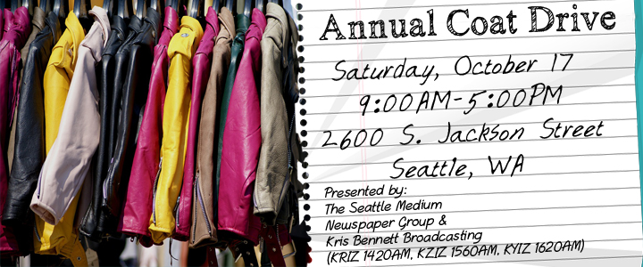 Save the date, mark your calendars. The Annual Coat Drive will take place on Saturday, October 17 from 9:00AM-5:00PM in the heart of the city at 2600 S. Jackson Street in Seattle.